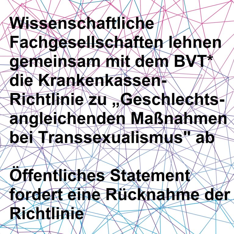 BVT* lehnt gemeinsam mit wissenschaftlichen Fachgesellschaften die neue Krankenkassen-Richtlinie zu „Geschlechtsangleichenden Maßnahmen bei Transsexualismus“ ab